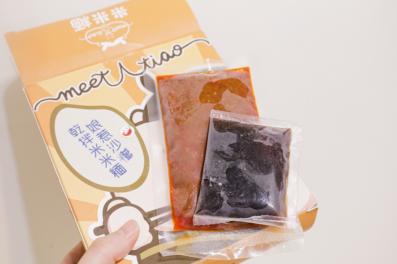 盒子裡面有:一份米米糆、一份三椒香菜皮蛋醬包、一份醬油膏。建議自己搭配想吃的蔬菜喔。