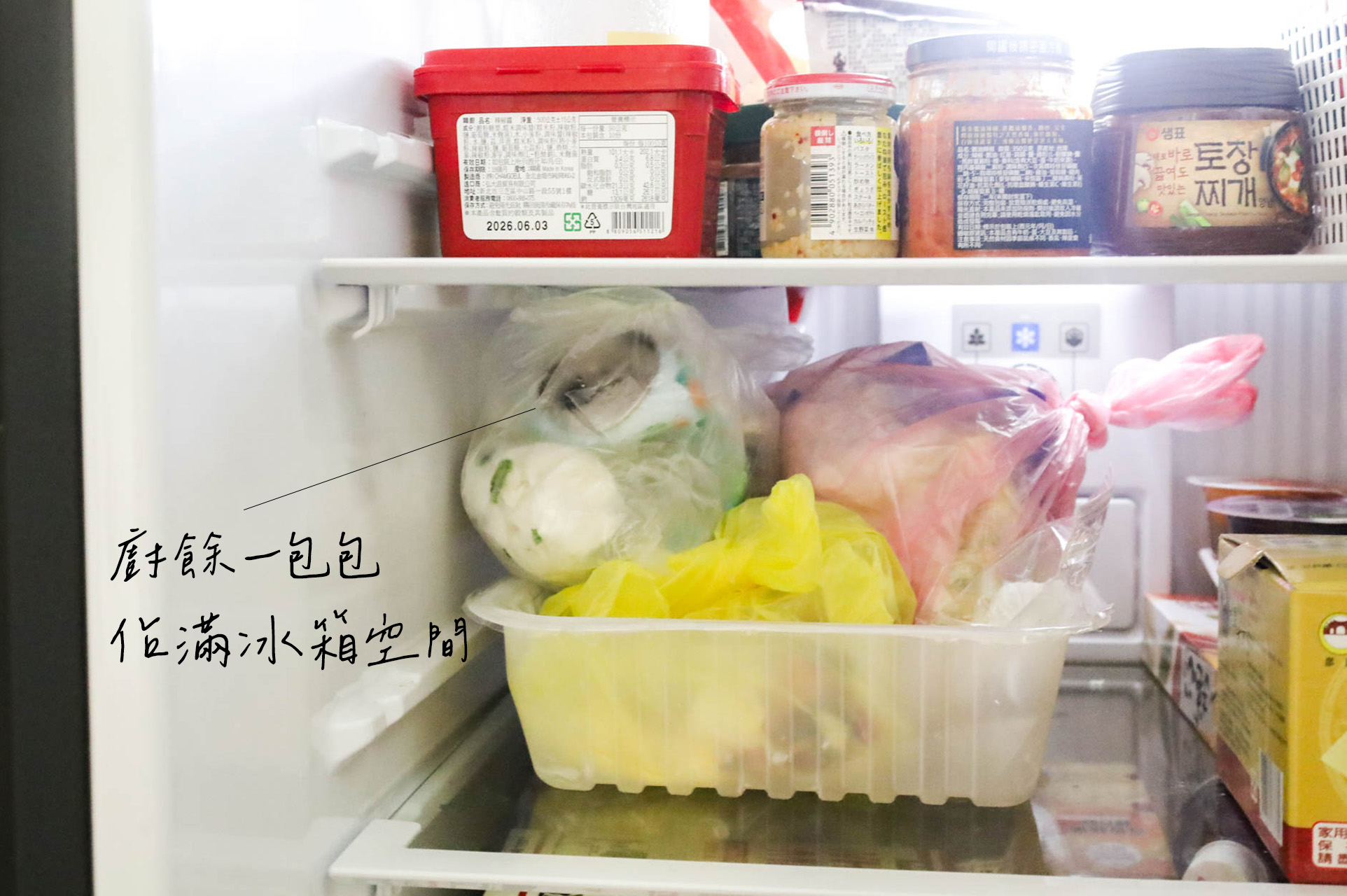 因為很多時候廚餘沒辦法立即處理,尤其是在洗手槽內的食物殘渣,夏天高溫更容易滋生小飛蟲,所以我自己習慣是打包好廚餘,集中放到冰箱,所以有一大部分的空間,只能讓給廚餘,才覺得可以考慮廚餘機。