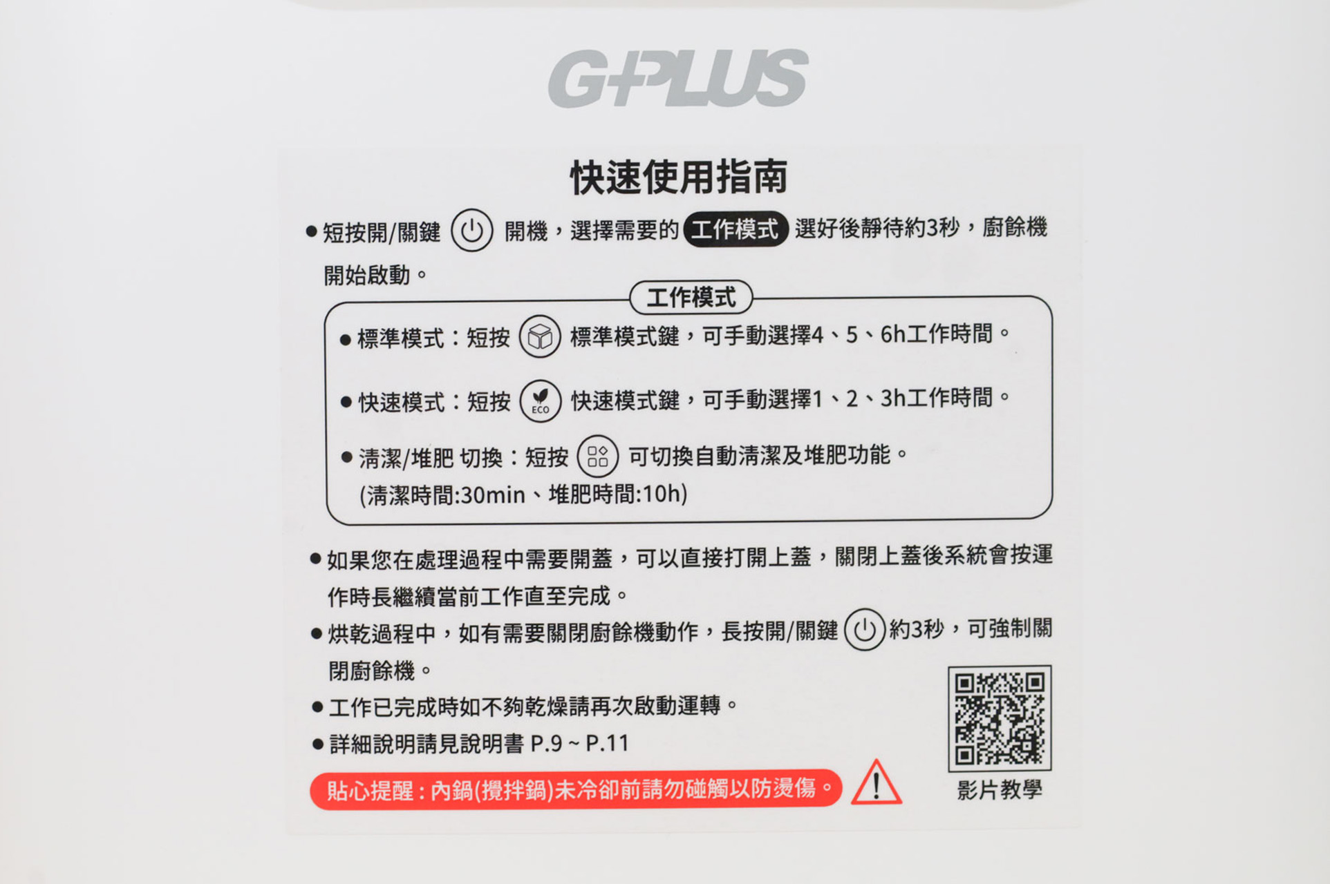 *啟用廚餘機時,內鍋會加熱,所以要拿出來時候,注意不要被燙到喔!