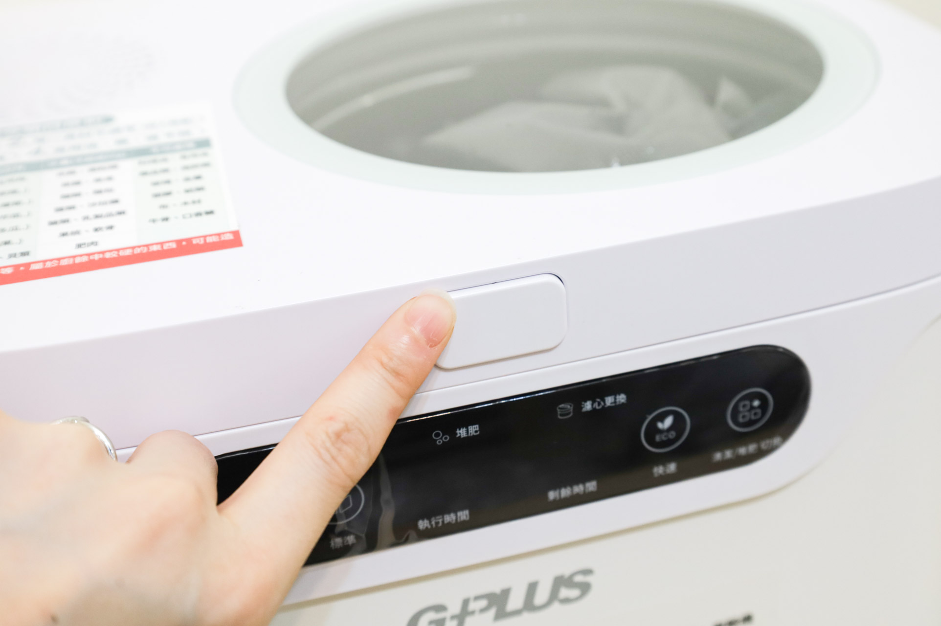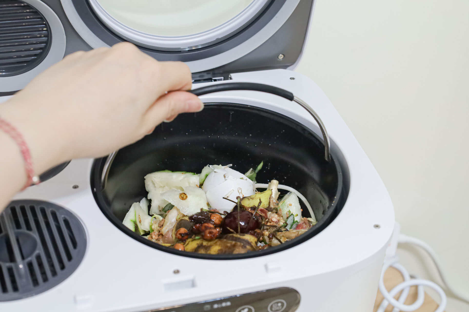 萬一中途想再加入廚餘,也是可以的。直接按打開蓋子,廚餘機就會暫停。