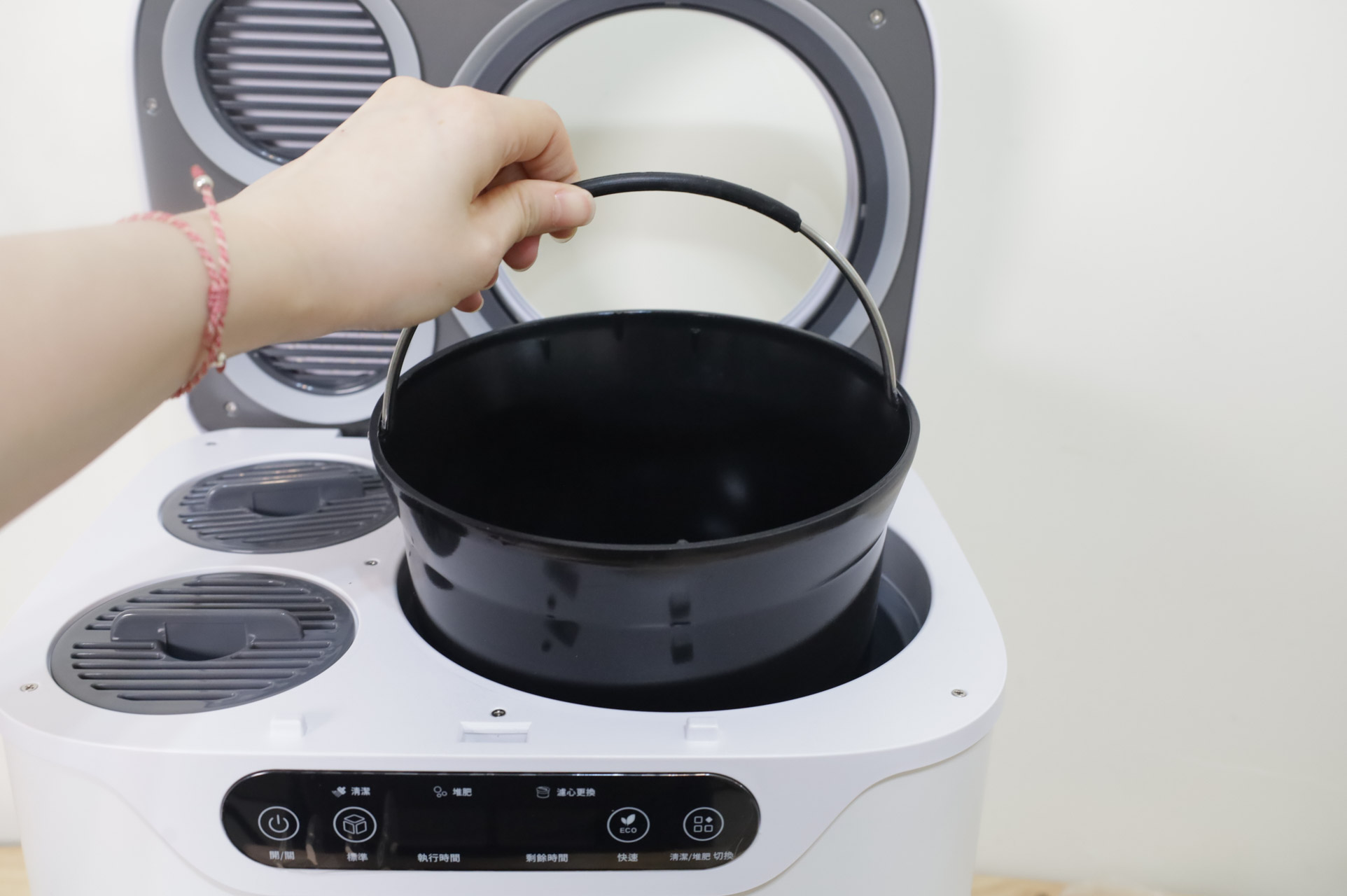 - 三段智慧模式:標準、快速、堆肥,可依需求選擇處理方式。