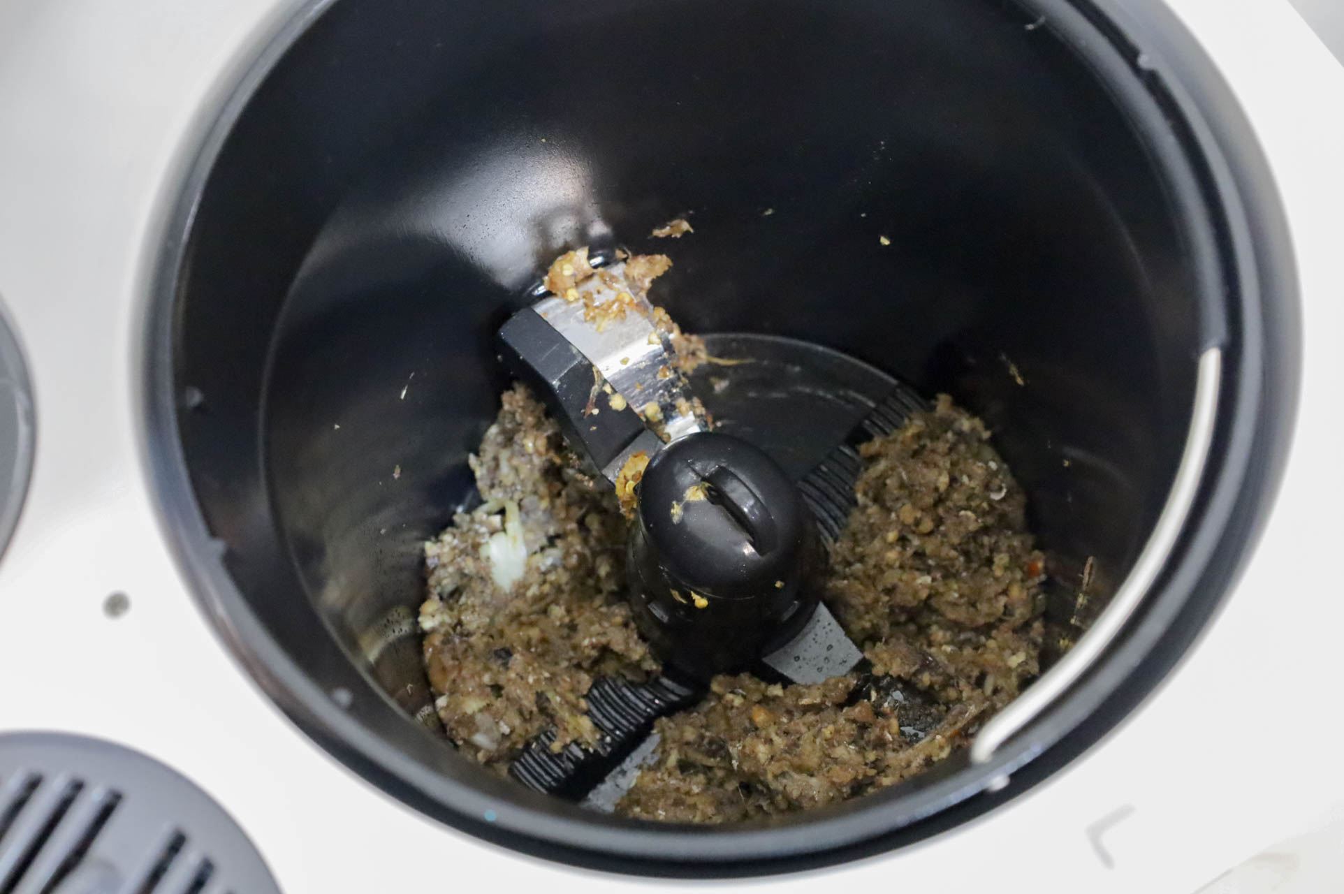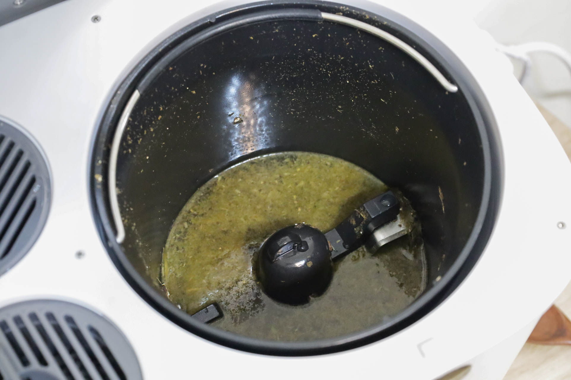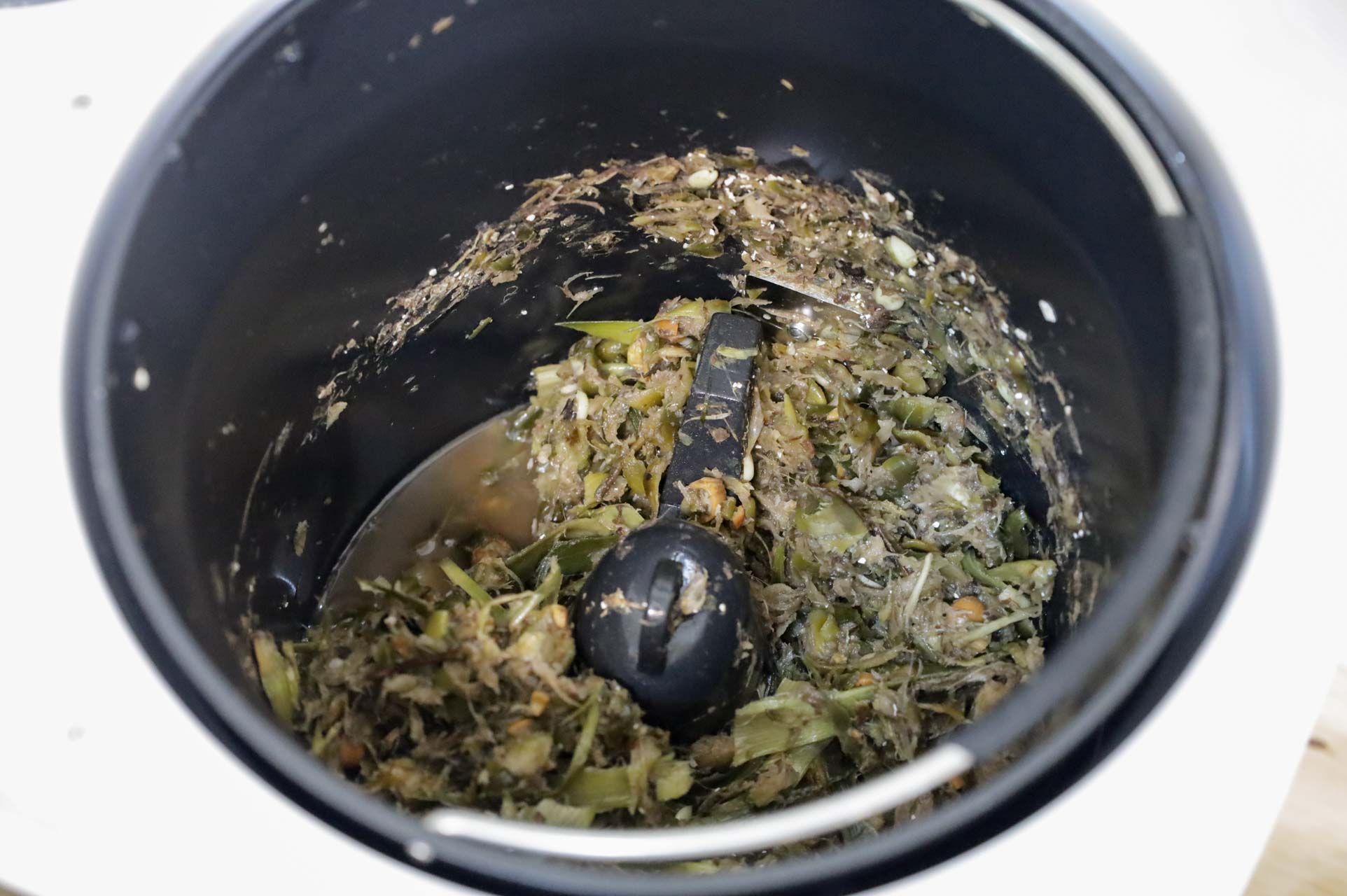 雙層X型攪拌槳設計,滿給力的!原本很多塊鳳梨皮和不少的廚餘都絞碎了,體積份量差很多!