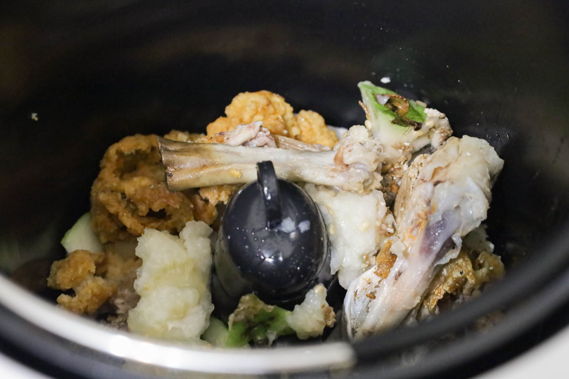 *注意:骨頭、大量貝類、螺類,屬於比較硬的材質,都可能造成攪拌內鍋有刮痕。