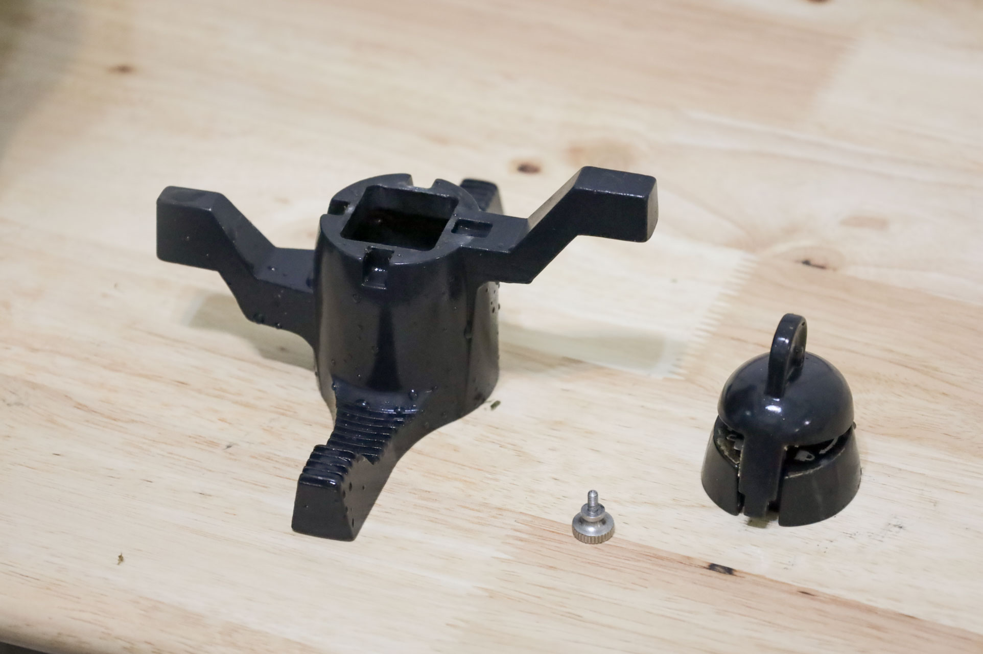 記得依照説明書,將攪拌槳對準位置(三角形準位),再來安裝鎖座,放上手轉螺絲,鎖完就可以固定了。