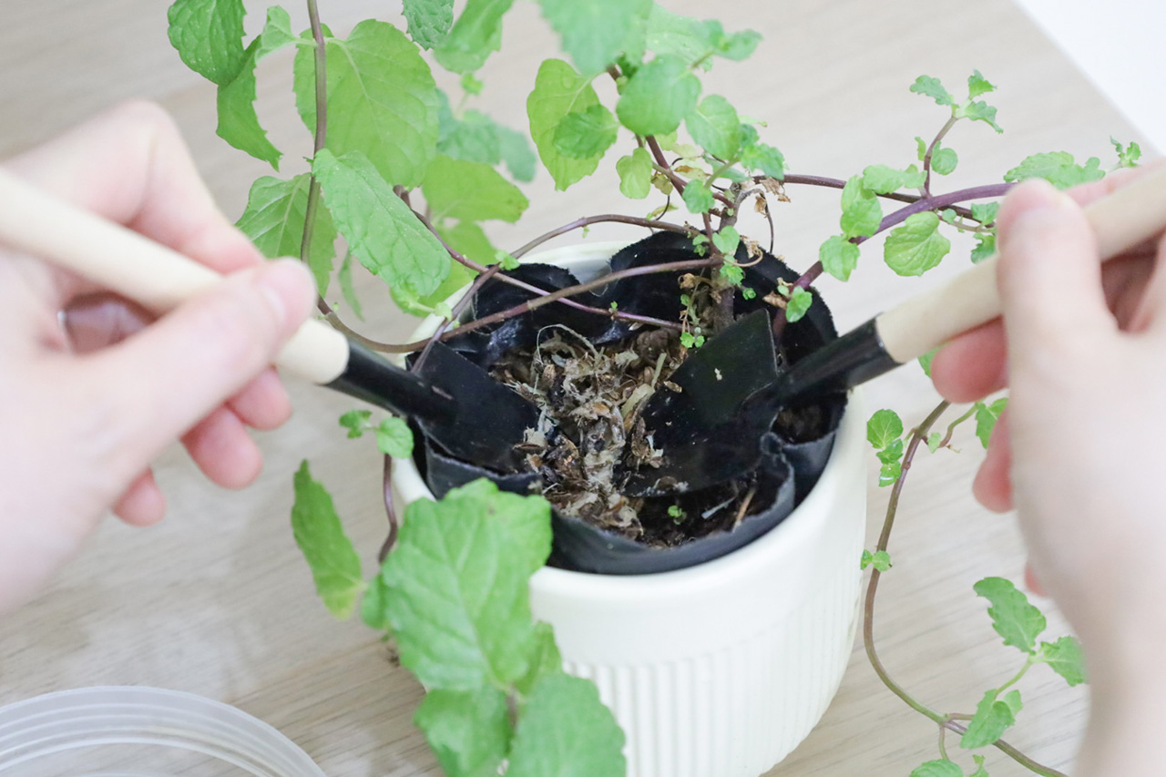 這樣就簡單完成植物施肥囉!而且是用自家的天然廚餘,也是環保再利用了!